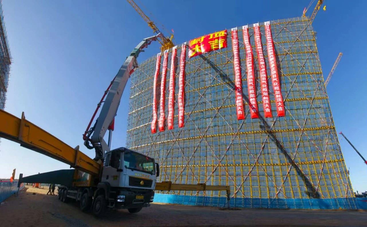 匯能集團卓正新材料項目氣化裝置氣化框架 41.46m 喜迎混凝土封頂